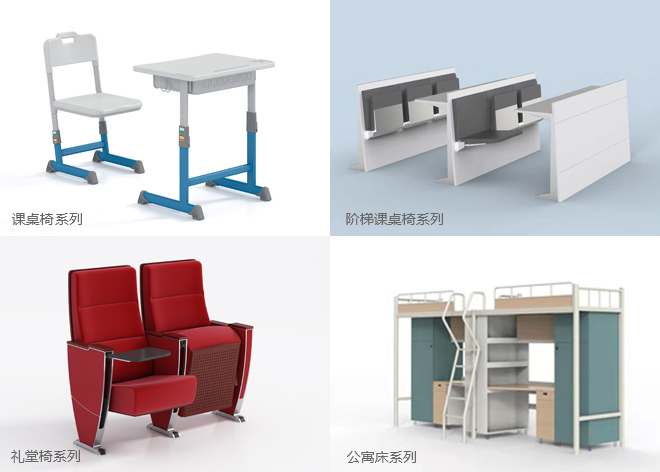 20年植根于教育市場,專業研發學校辦公家具、學生課桌椅、禮堂椅、公寓床、影院椅等,涵蓋10大品類,5000款單品。